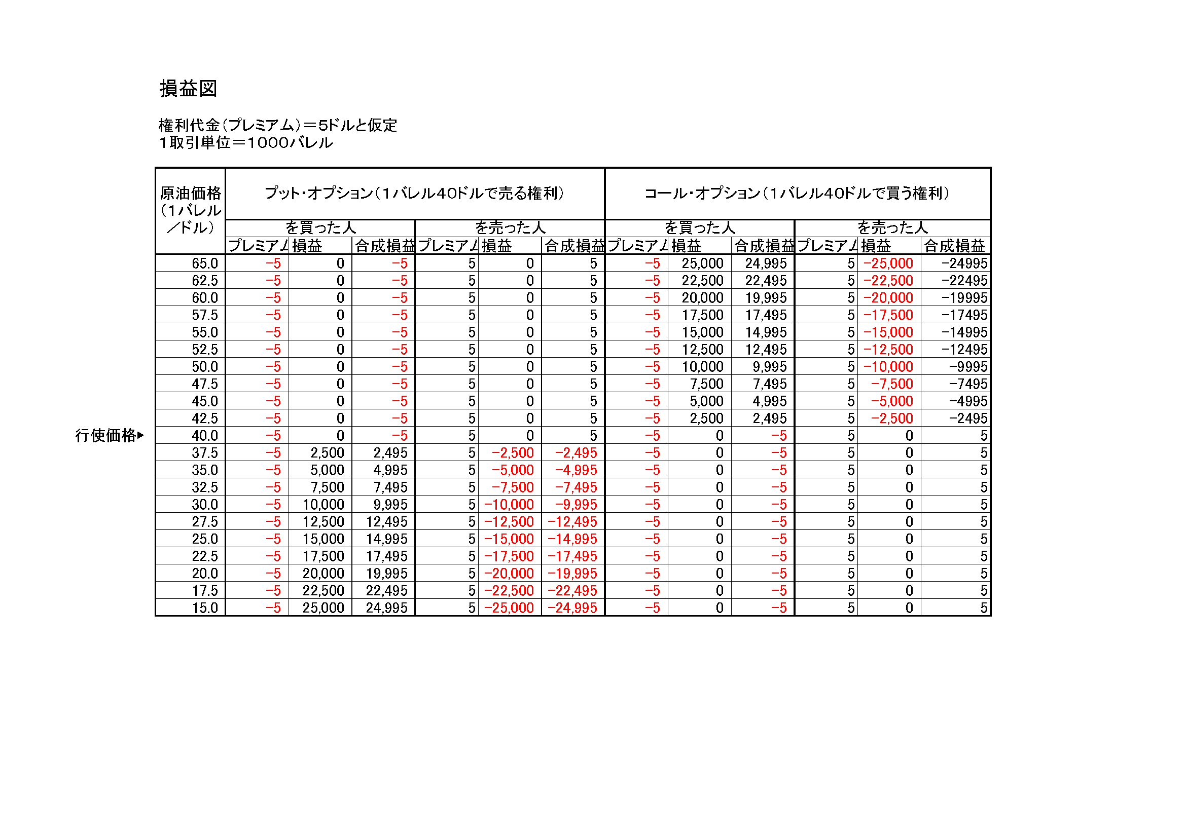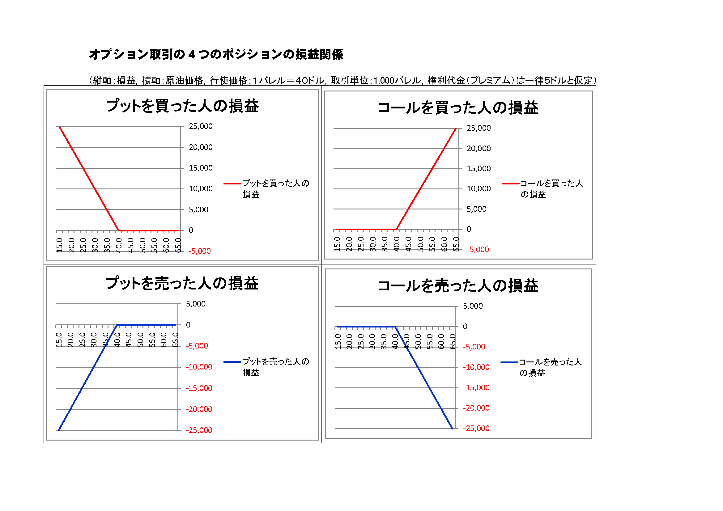 現物投資と比較して,使用する資金に対する損益の比率が大きくなる(レバレッジ効果)。即ち,ハイリターンが期待できる反面,ハイリスクの可能性があるのである。とりわけ,コール,プットの売り手は,損失額が無限定である。